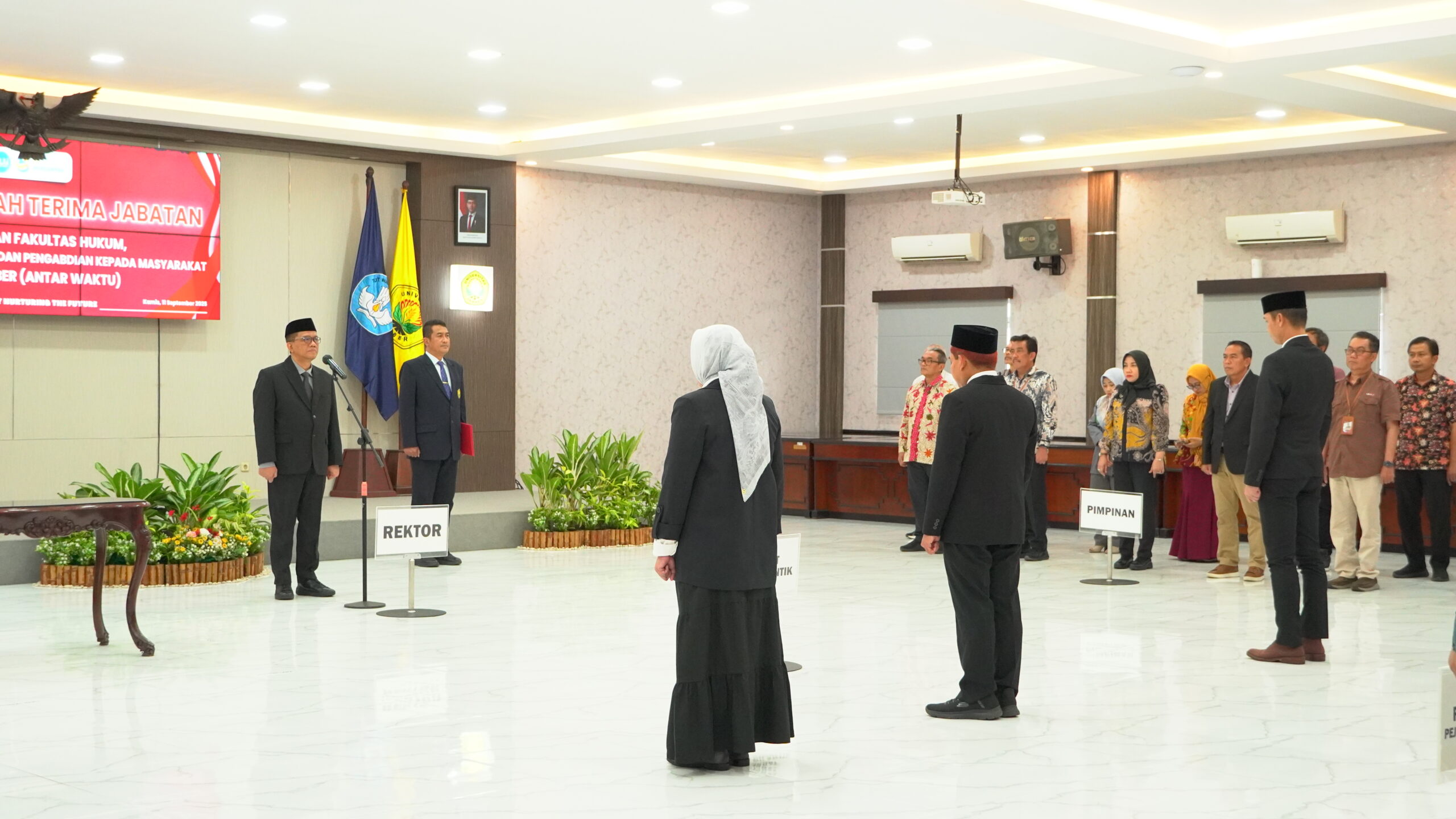 Jember, 11 September 2025 — Rektor Universitas Jember (UNEJ), Dr. Ir. Iwan Taruna, M.Eng., secara resmi melantik Dekan dan Wakil Dekan I Fakultas Hukum Universitas Jember (FH UNEJ). Pelantikan Dekan FH UNEJ tersebut yakni terhadap Prof. I Gede Widhiana Suarda – yang sebelumnya menjabat Wakil Dekan I – menggantikan Prof. Bayu Dwi Anggono. Sedangkan pejabat yang dilantik menjabat Wakil Dekan Bidang Akademik yakni Dr. Yusuf Adiwibowo menggantikan Prof. I Gede Widhiana Suarda.