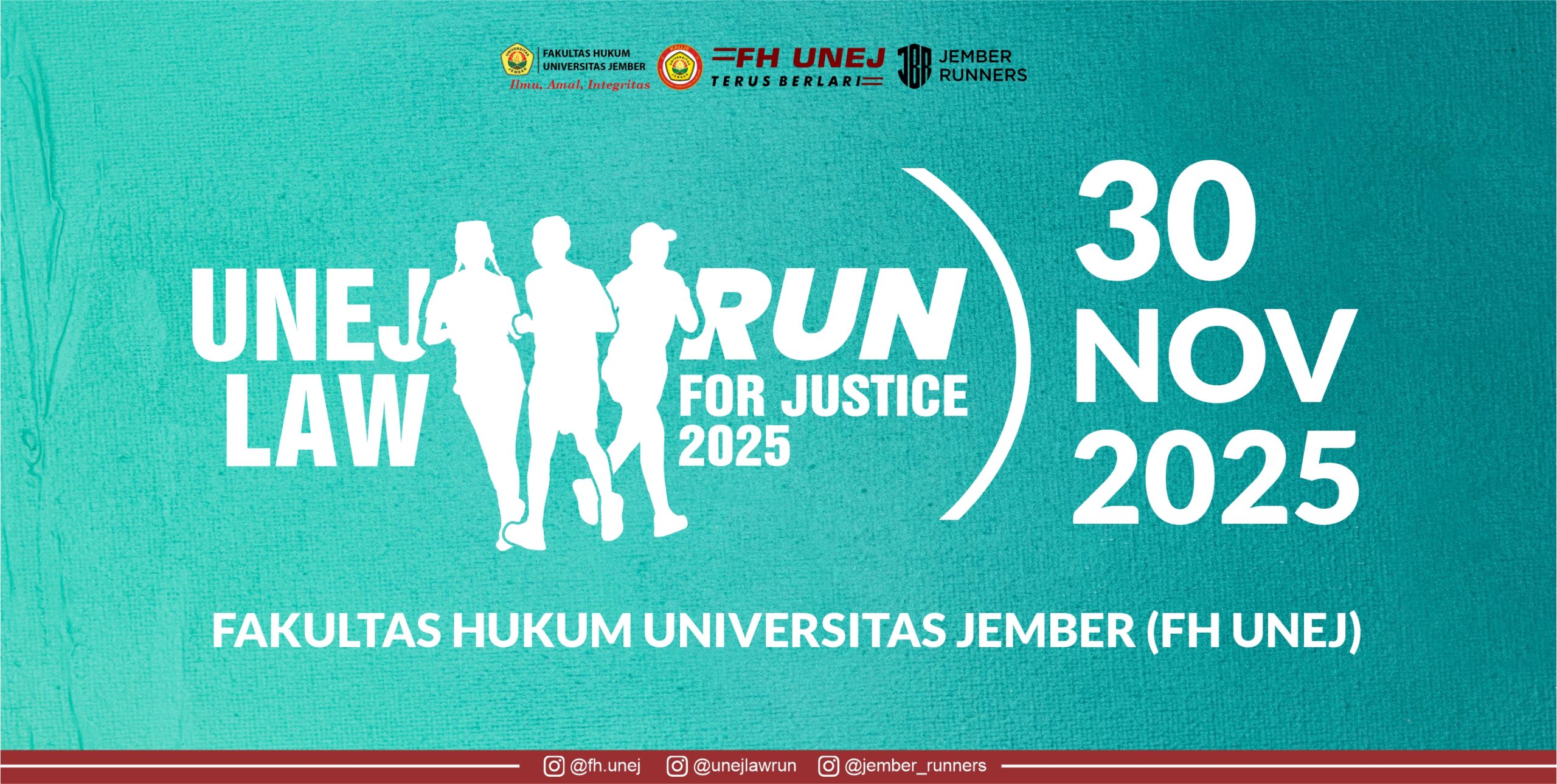 A: Karena ini bukan sekadar lomba lari. Peserta akan melewati rute kampus dengan landmark khas Universitas Jember, mendapatkan race pack eksklusif bertema hukum, serta menikmati hiburan dan doorprize yang tidak akan ditemukan di event lain.